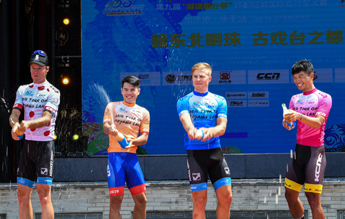 賽事第三站舉辦地――景德鎮(zhèn)樂平市位于江西省東北部,這里有藍浸綠染的國家級水利風景區(qū)“翠平湖”、鬼斧神工的省級重點風景名勝區(qū)“洪巖仙境”、稀世奇幻絕景“淚灘雙月”、巧奪天工的“文山石林”、避暑勝地“歷居寺”以及饒派風格古民居建筑群等一批特色自然人文景觀。樂平最為世人稱道的是贛劇的發(fā)揚和傳承,素稱“贛劇之鄉(xiāng)”。因樂平人民酷愛贛劇由來已久,全市保有古戲臺412座,又被稱為“中國古戲臺博物館”。在本賽站的頒獎儀式上,中外騎手們都領略到了令人醉心的樂平“高腔”,并為之叫好。中華文化精髓與瑰寶在不知不覺中深入人心。 在景德鎮(zhèn)樂平站112.3公里的比賽中,荷蘭猴城樂園車隊克里斯蒂安?亞歷山大奪得冠軍,挪威CCN歐洲聯(lián)隊格熱戈日?司特普尼克獲得亞軍,芬蘭米捷亞CCN車隊羅伊?伊弗明獲得季軍。爬坡王(圓點冠軍衫)和個人總成績(藍冠軍衫)獎分屬:荷蘭猴城樂園車隊的伊瓦爾?尼爾斯和克里斯蒂安?亞歷山大。沖刺王(橙冠軍衫)和最佳大中華獎(粉剪冠軍衫)分別由中國熊貓CCN車隊的彭源堂和中國臺北前勁車隊的陳建良獲得。景德鎮(zhèn)市及樂平市各級領導為獲獎選手及運動隊頒獎。之后,省體育局副局長林軍向樂平市委副書記、市長徐輝頒發(fā)了本屆大賽“優(yōu)秀賽區(qū)”獎。